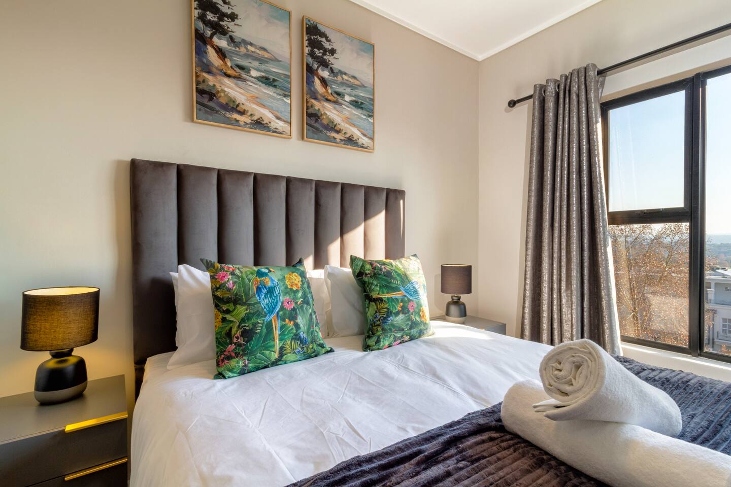 Captain’s Hideout is a calm, refined two-bedroom apartment in the leafy heart of Bryanston, Sandton. Designed for privacy, rest, and quiet comfort, it’s ideal for business travelers, longer stays, or guests needing a peaceful base while spending time in Johannesburg. With quality finishes and considered design, the apartment offers a calm, comfortable base for your stay.